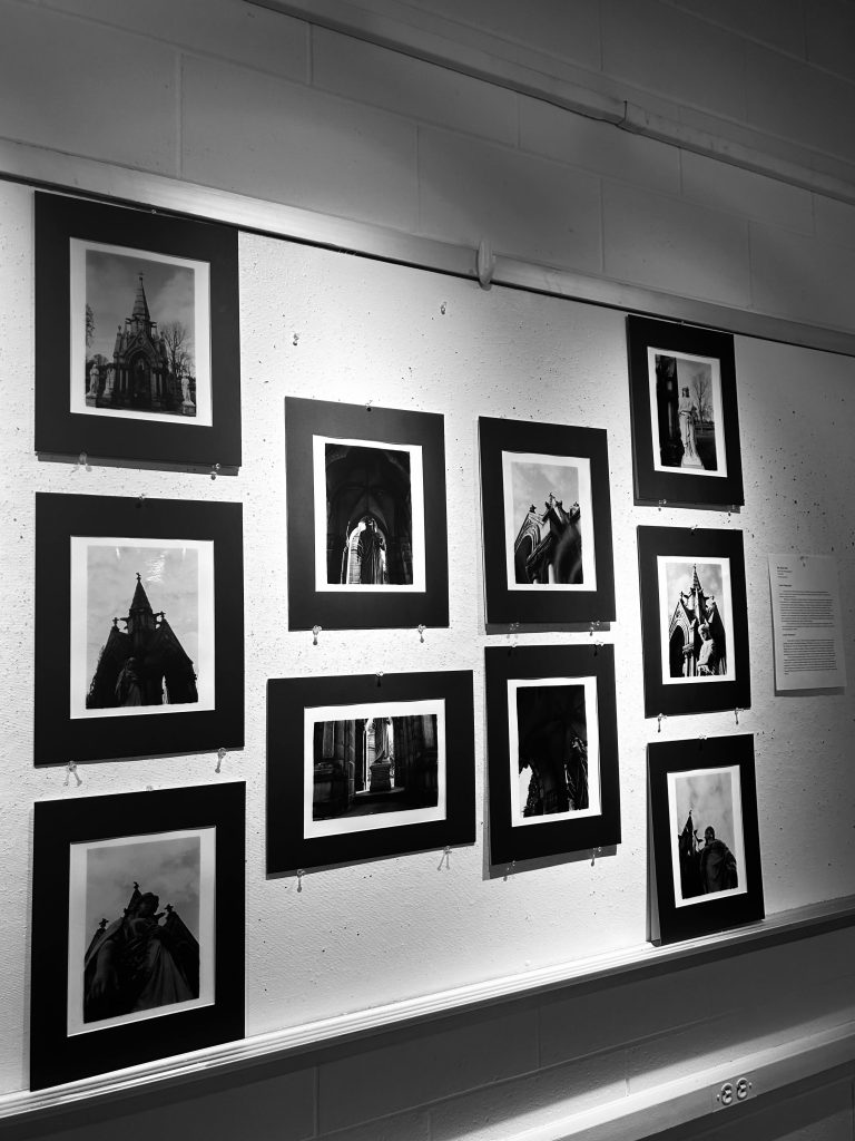 Photography final dedicated to the Samuel Fletcher Pratt Monument at Forest Lawn Cemetery in Buffalo, NY. This mausoleum is a miniature Gothic cathedral with a towering central spire ringed with menacing gargoyles and Roman Corinthian columns. The four female figures standing on each corner of the monument are classically draped, a nod to Classical Revival. There, at this monument lays Samuel Fletcher Pratt with his wife Mary Jane Strong and their two children, Jeannie and Helen.